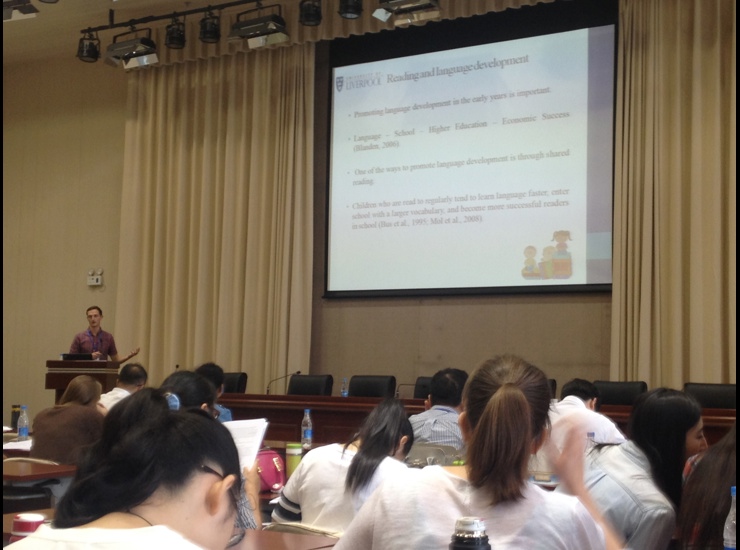 Having spent a thoroughly enjoyable few days in Beijing, I headed south to the city of Tianjin, where the workshop was being held. Prof Simon Liversedge from the University of Southampton kick-started the workshop off with a fascinating keynote on using eye movements to study reading development in English and Chinese. One of the (many!) differences between written English and Chinese is that there are no spaces between the words in Chinese and so researchers have explored how word spacing and the frequency of words affects word learning. Following this, we then heard some more fantastic talks, this time from early career researchers, such as Helen Breadmore and Nina Liu, before it was my turn to give my talk. I talked about the work we have been doing in Liverpool, in collaboration with a reading charity called The Reader. Together we have been evaluating the effectiveness of a shared reading intervention using a randomised control trial and I presented the preliminary findings from the first of two cohorts.