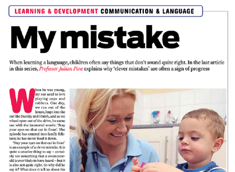 In our final Nursery World Magazine article, Prof Julian Pine discusses the clever mistakes children make when learning to talk. Why do children make these errors and what should parents, caregivers a