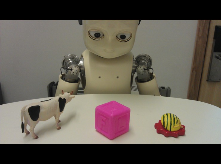 They programmed a humanoid robot called iCub designed to have similar proportions to a three year old child, using simple software which enabled the robot to hear words through a microphone and see with a camera. They trained it to point at new objects to identify them in order to solve the mystery of how young children learn new words.